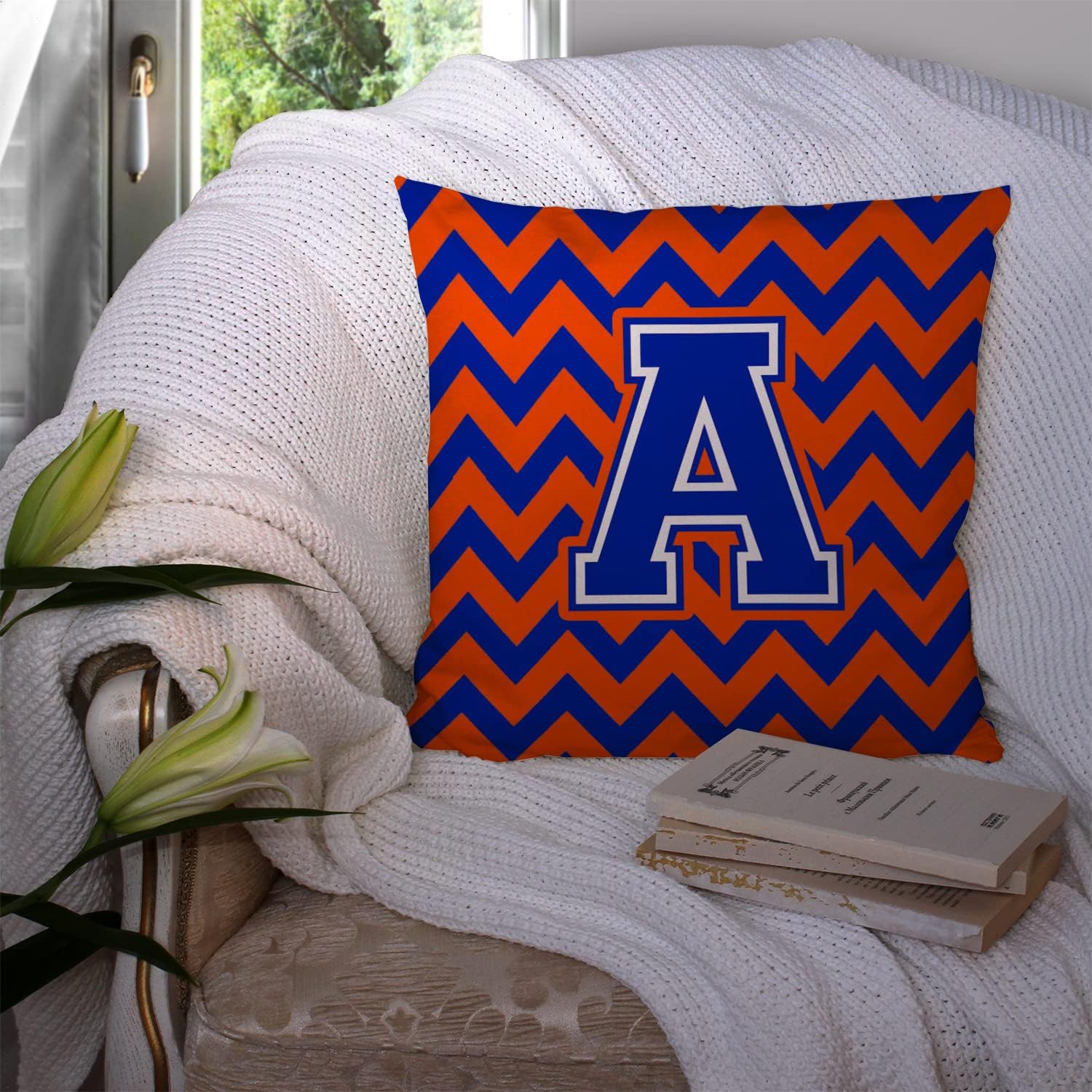 | Model Name | Chevron Orange and Blue Decorative Fabric Pillow |