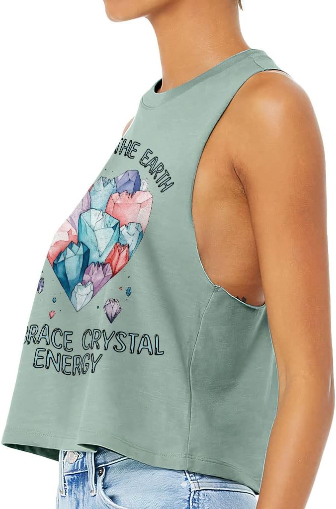 Cute and flattering Crystal Energy Racerback Cropped Tank is suitable for most indoor or outdoor activities, such as gym, yoga, running, hiking, beach or relaxing around the house. Pair Heart with your favorite sports bras, especially strappy ones, and high-waisted leggings, then you will enjoy cool and comfortable exercise throughout the summer.